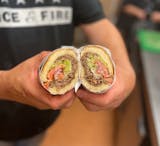 Made with a generous portion of ribeye steak, American & mozzarella cheese, diced tomatoes, onions, topped with lettuce after baking.