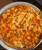 Buffalo wing sauce, blue cheese, covered with mozzarella, cheddar & Romano cheese & topped with crispy chicken tender.